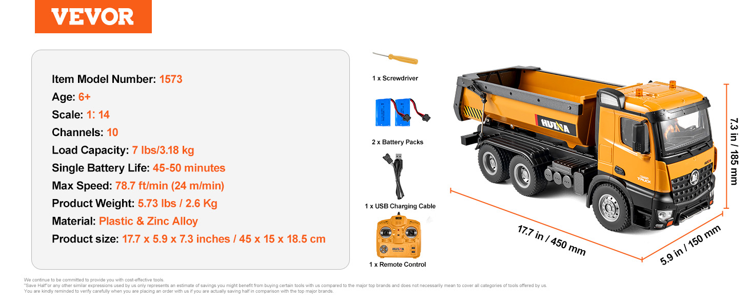 Diaľkovo ovládaný sklápací model 1:14 10 kanálov 2× nabíjateľné batérie