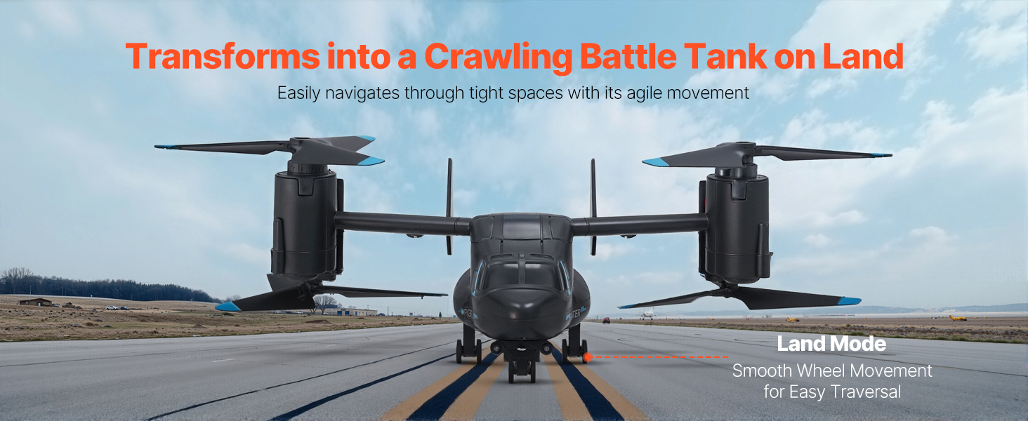 Nemáte podmienky na lietanie? Žiadny problém! Prepnite do pozemného režimu a transformujte rc lietadlo na pozemné vozidlo, čo umožňuje plynulú hru na zemi, keď nie je možné lietať.