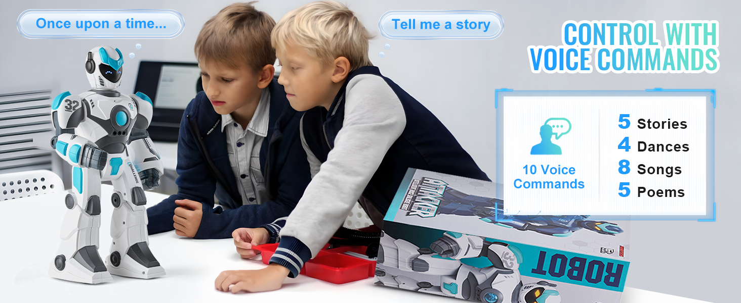 Váš kamarát robot na diaľkové ovládanie počúva váš hlas! Vďaka 10 rôznym príkazom dokáže rozprávať príbehy, tancovať, spievať a dokonca recitovať básne. Stačí povedať slovo a zábava sa môže začať!