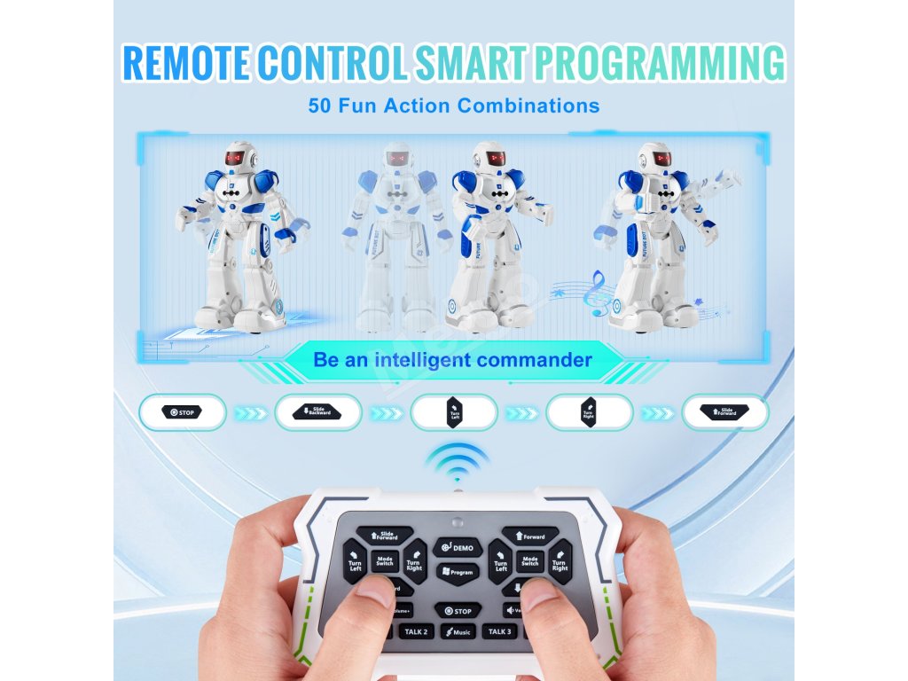 Zoznámte sa s inteligentnou RC robotickou hračkou, ktorá je pre deti kopou zábavy! Vďaka funkciám, ako je inteligentné programovanie a interaktívna hra, je to dokonalý kamarát na učenie a nadväzovanie vzťahov.