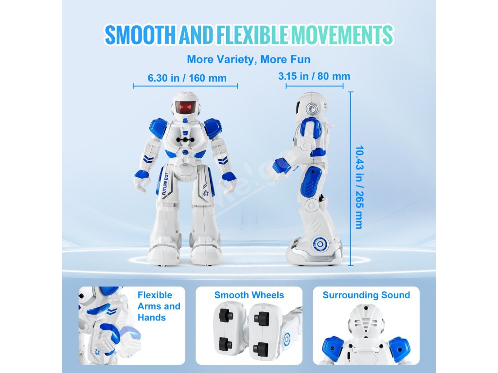 Hladké kolieska a viacnásobné kĺby robota pre deti mu umožňujú vykonávať rôzne pohyby, vďaka čomu je hra vzrušujúca a plná možností.