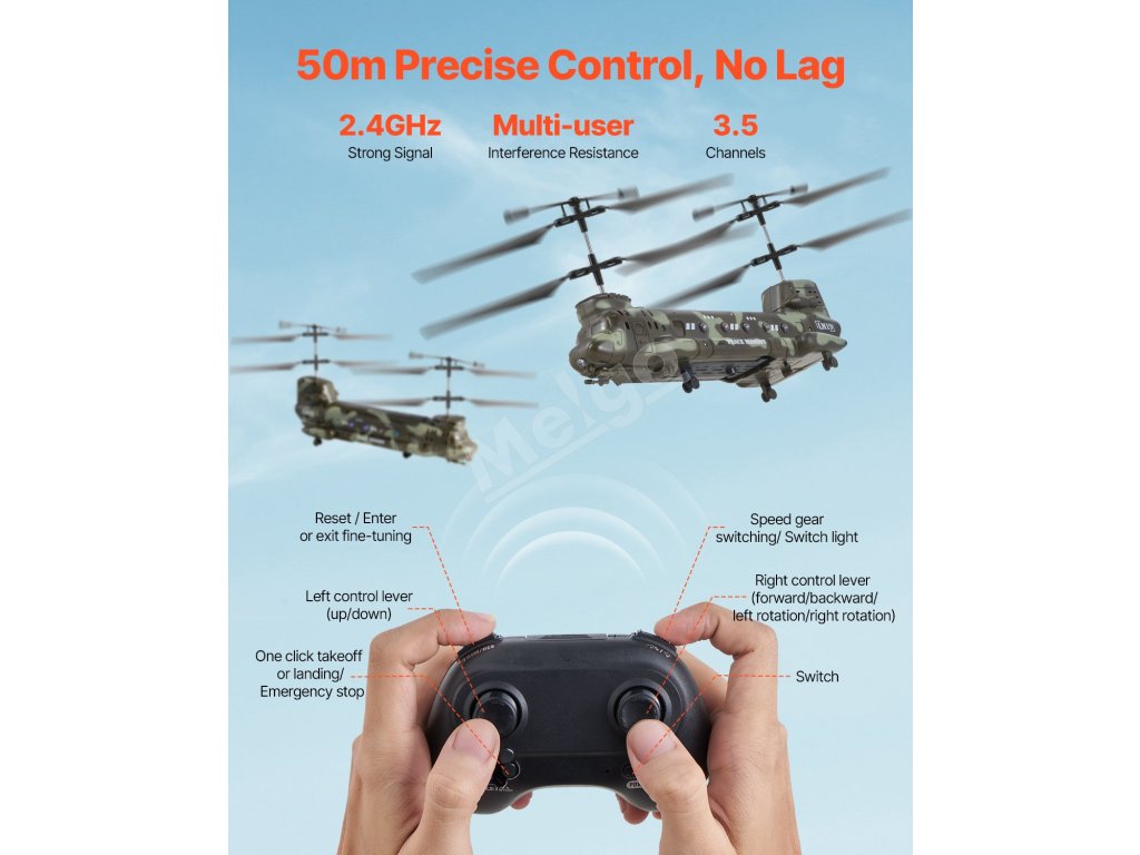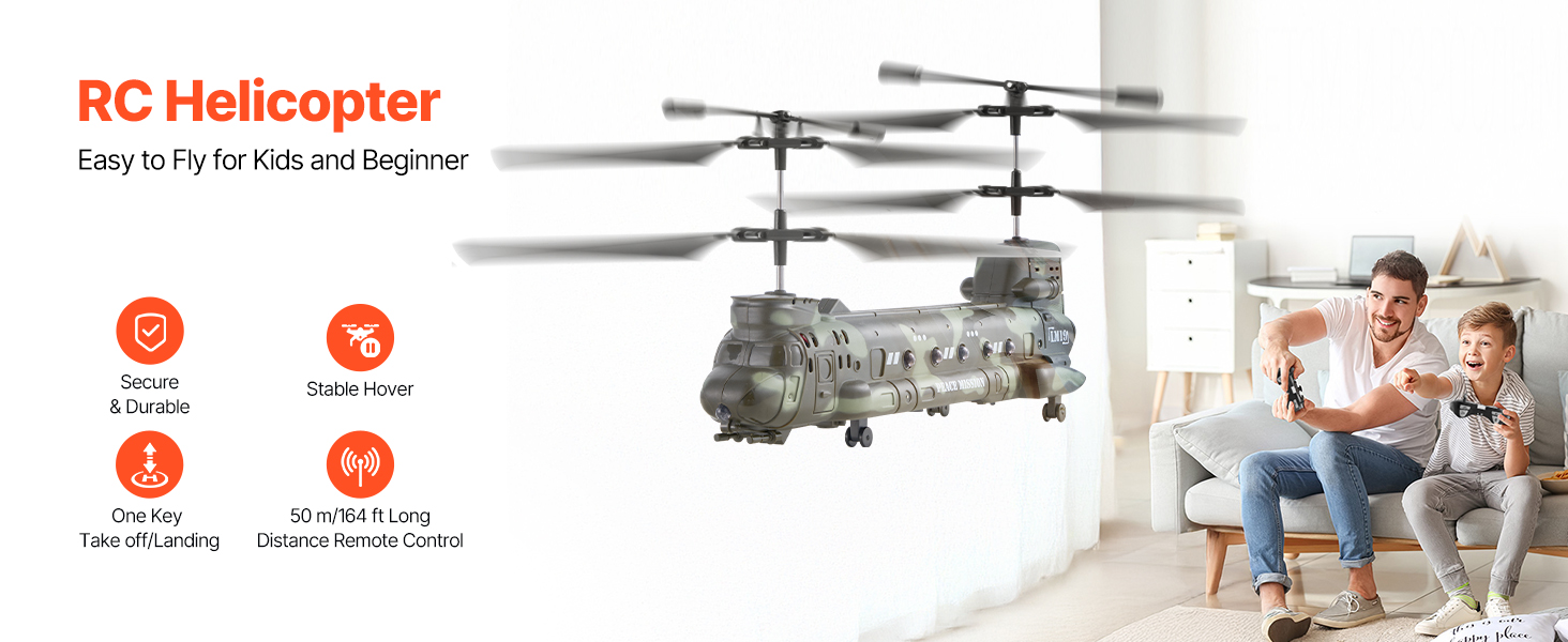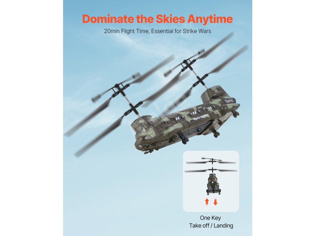 Tento RC vrtuľník je vybavený funkciou vzletu/pristátia pomocou jedného tlačidla a pokročilým gyroskopickým systémom pre jednoduchú a stabilnú prevádzku. Je vyrobený z odolných materiálov odolných voči nárazom a dodáva sa s 2,4GHz diaľkovým ovládačom na presné ovládanie na veľkú vzdialenosť. Ideálny pre deti od 8 rokov. Žiarivé svetlá dodávajú ďalšiu zábavu.