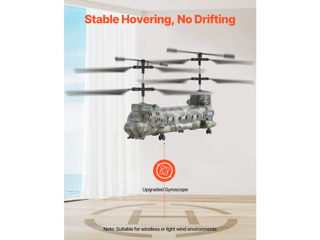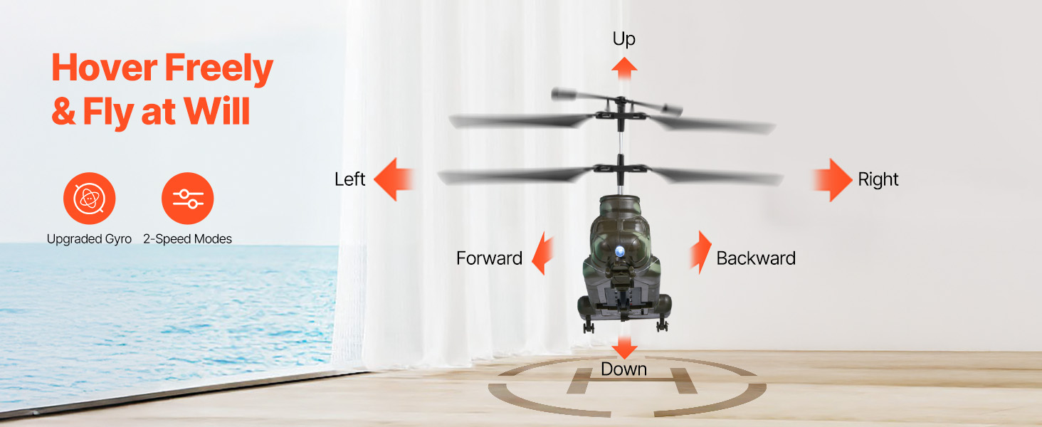 Vybavené vylepšeným systémom gyroskopu na automatické stabilné vznášanie, vďaka ktorému sa dá ľahko lietať a presne ovládať rýchlosť a smer.
