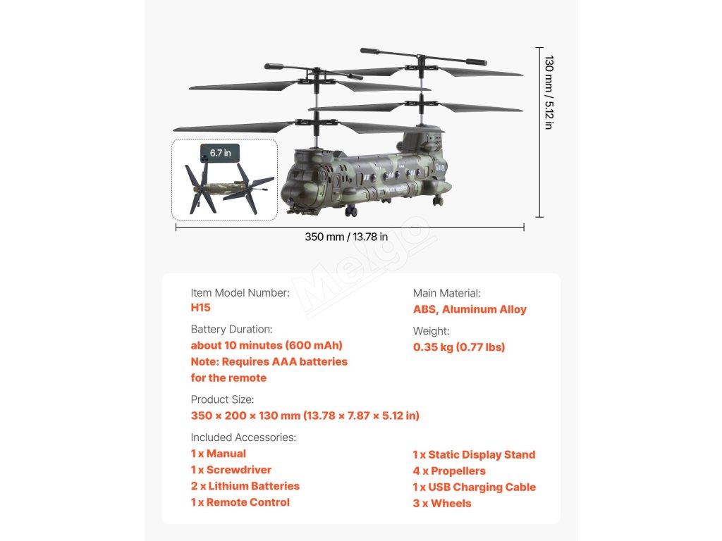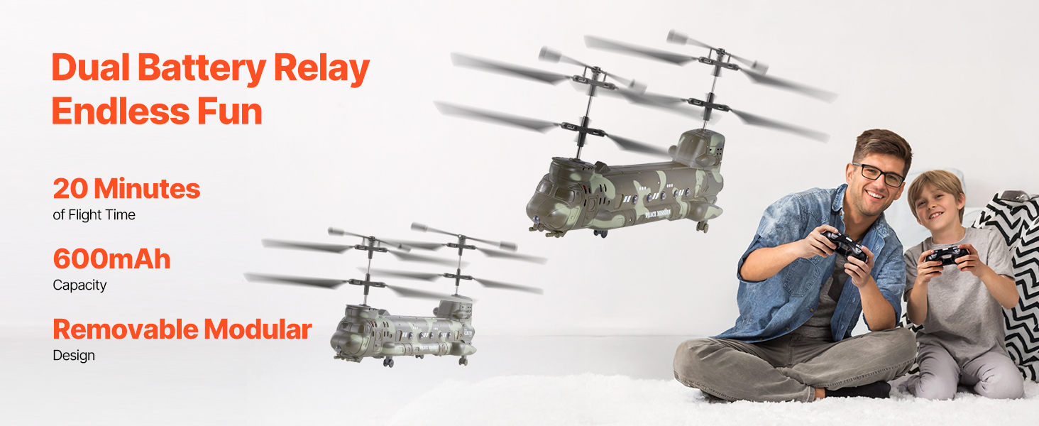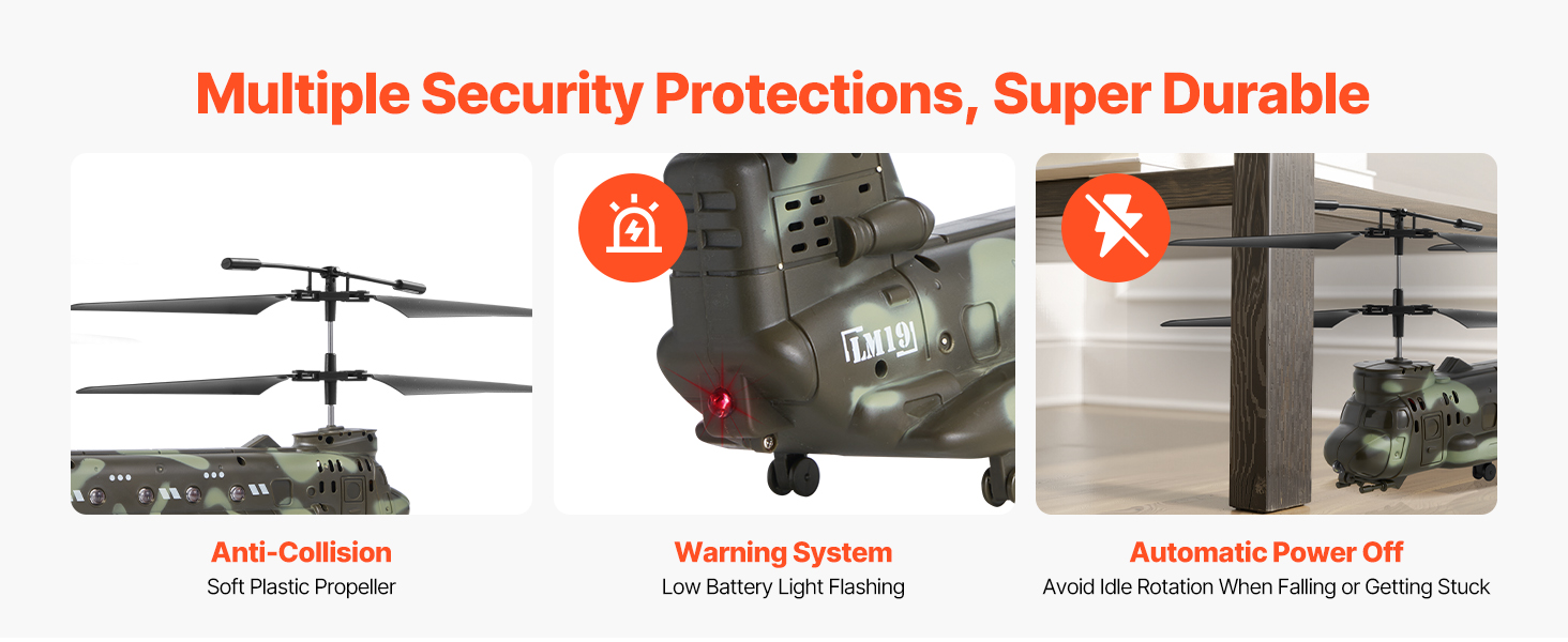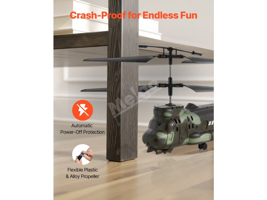 Tento vrtuľník na diaľkové ovládanie, vyrobený z vysokokvalitných materiálov, je odolný voči nárazom a je ideálny na to, aby si s ním deti mohli užívať hru v interiéri aj exteriéri dlhší čas.