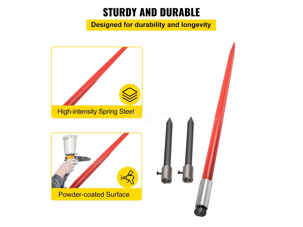 Naše kopije na balíky sena sú vyrobené z vysokokvalitnej pružinovej ocele a sú povrchovo upravené práškovou farbou, aby boli odolné voči korózii. Kopija je dostatočne odolná na dlhodobé používanie.