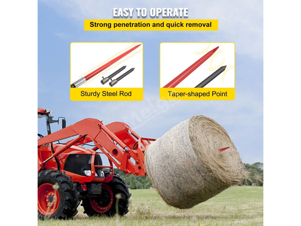 Hrotom na balíky sena môžete ľahko prepichnúť balíky sena pomocou jeho robustného a ostrého oceľového hrotu bez toho, aby ste ich vytlačili z pôvodného miesta.