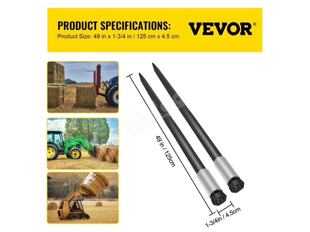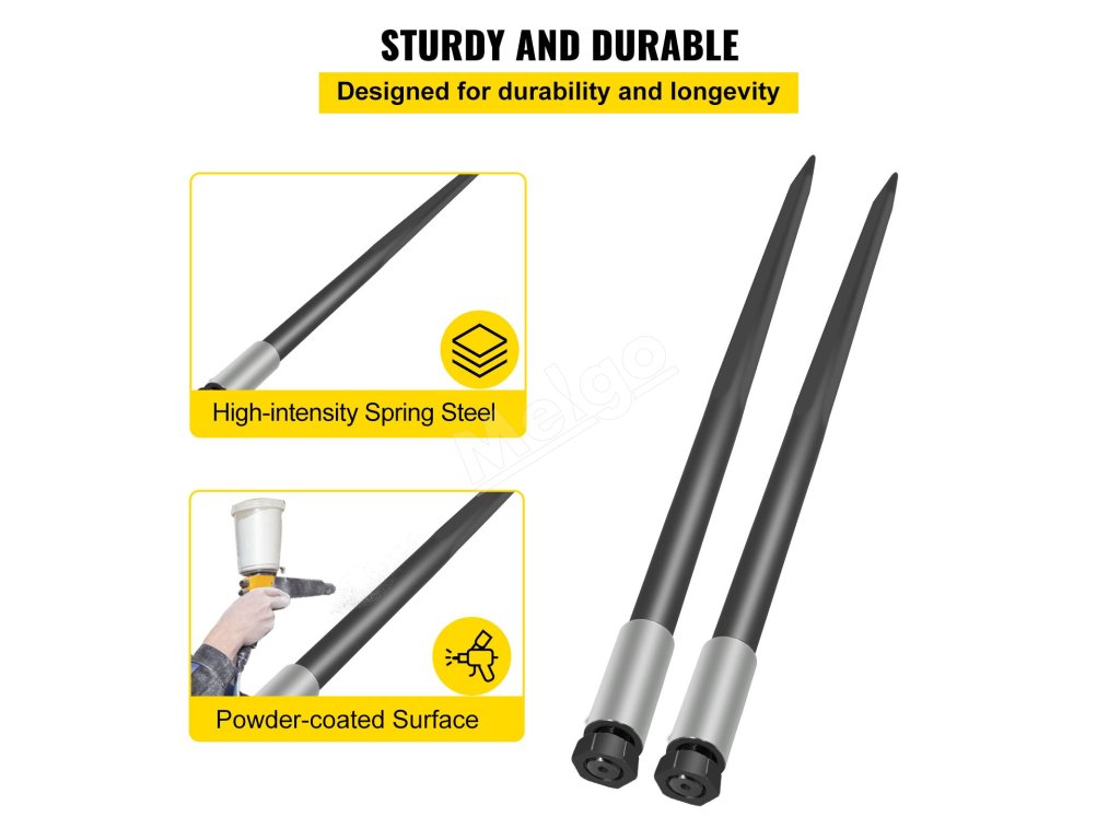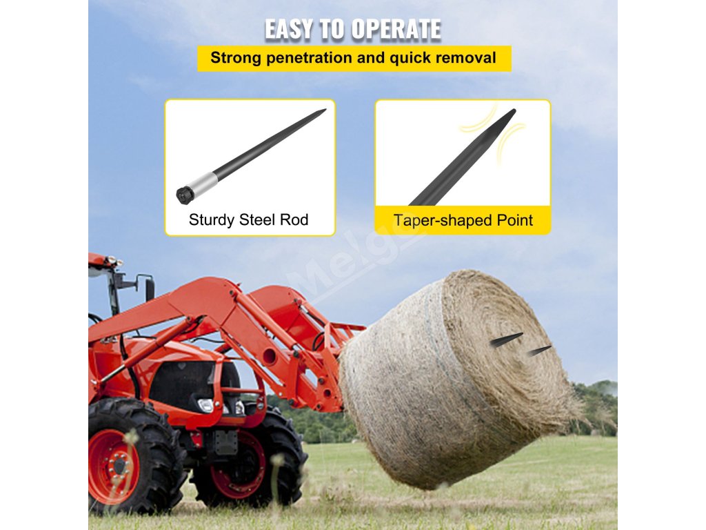 Naše kopije na balíky sú dlhé 49 palcov. Je navrhnutý so štvorcovou tyčou a kužeľovitým ostrým hrotom pre maximálnu pevnosť. Dokáže tak premiestniť akúkoľvek veľkosť balíkov sena.
