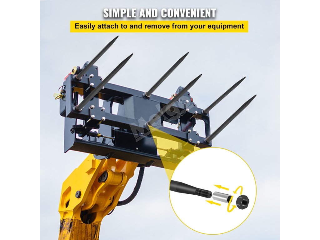 Tento oštep na seno sa ľahko inštaluje. Je vybavený pohodlným systémom skrutiek a matíc. Tento systém umožňuje rýchle upevnenie a odstránenie. Môžete ho jednoducho pripojiť k prídavným zariadeniam traktora alebo nakladača. Funkcia rýchleho pripevnenia vám zaručí úsporu času. Na jeho nastavenie nie sú potrebné žiadne špeciálne nástroje. Ľahko sa nasadí na rýchloupínacie prípojky vášho zariadenia. Je teda schopný pracovať na rôznych poľnohospodárskych úlohách. Medzi rôznymi prídavnými zariadeniami môžete prepínať rýchlo a jednoducho. To šetrí čas aj námahu.