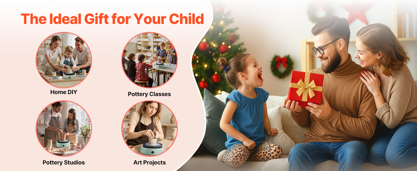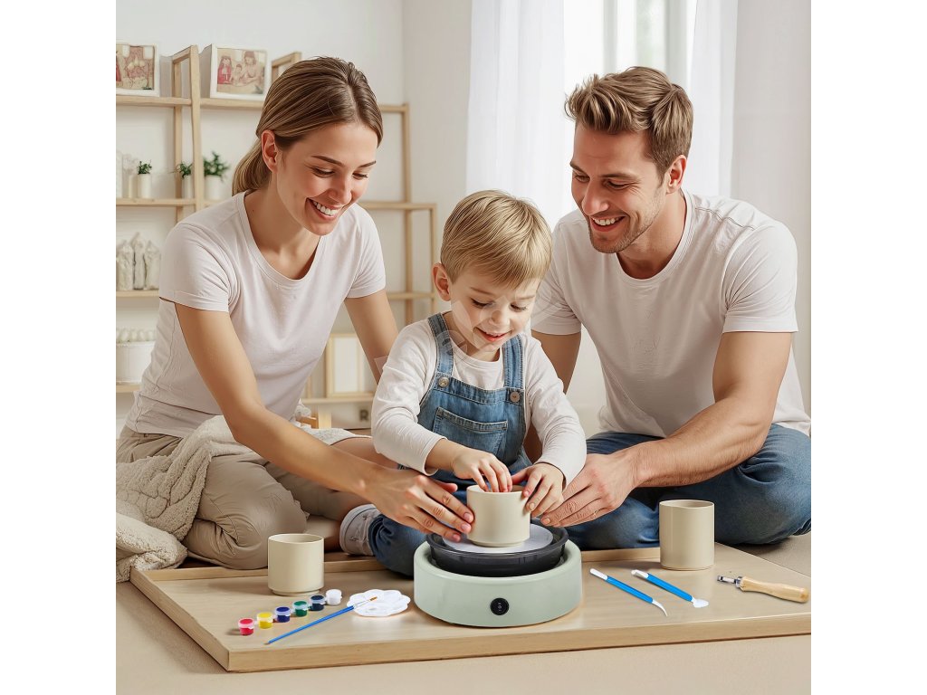 Tento mini keramický hrnčiarsky kruh je ideálny pre rodinných kutilov, umelecké kurzy alebo hrnčiarske ateliéry. Podnecuje tvorivosť a nápaditú hru a zároveň podporuje kvalitne strávený čas rodičov a detí. Premyslený darček v podobe hrnčiarskeho kruhu pre začínajúcich mladých tvorcov.