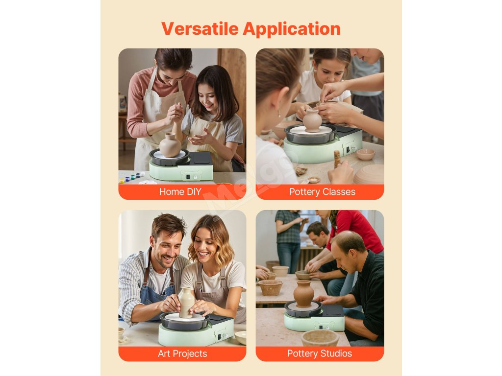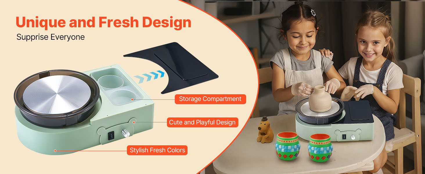 Kompaktný a priestorovo úsporný hrnčiarsky kruh pre deti má hladký povrch, ktorý sa ľahko utiera. Vďaka jednoduchému rozhraniu a dizajnu vhodnému pre začiatočníkov je jeho obsluha a každodenná údržba rýchla a bez stresu.