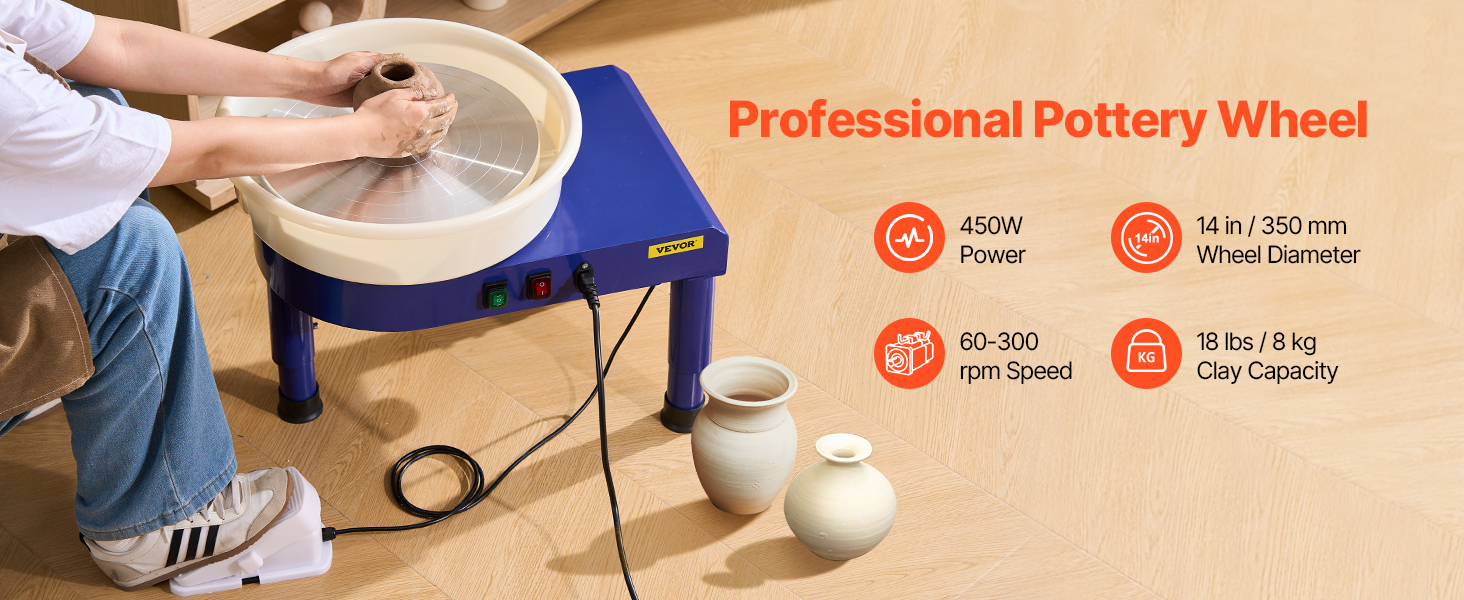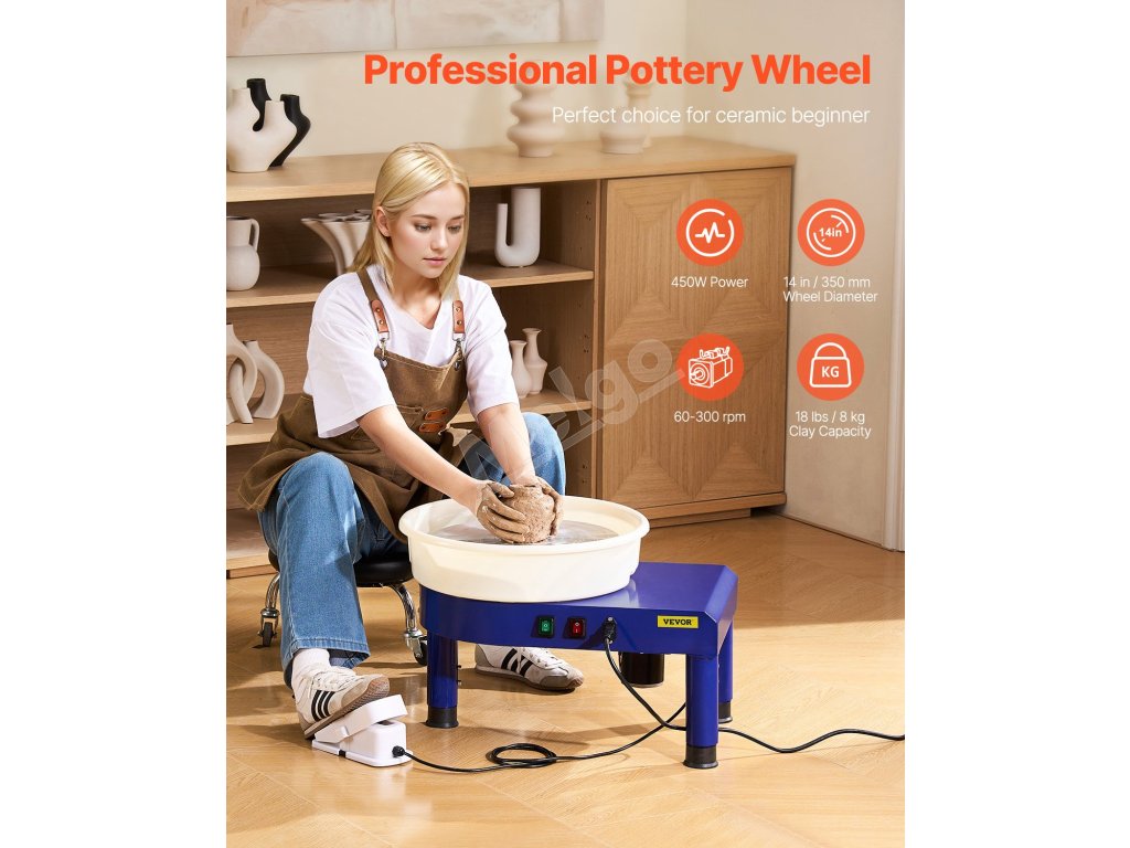 Keramický kruh je vybavený vysoko výkonným bezkartáčovým motorom, ktorý poskytuje konzistentný a robustný výkon v rôznych pracovných podmienkach. Nastaviteľné otáčky od 60 do 300 otáčok za minútu umožňujú presné ovládanie a umožňujú realizáciu všestranných a kreatívnych keramických projektov.