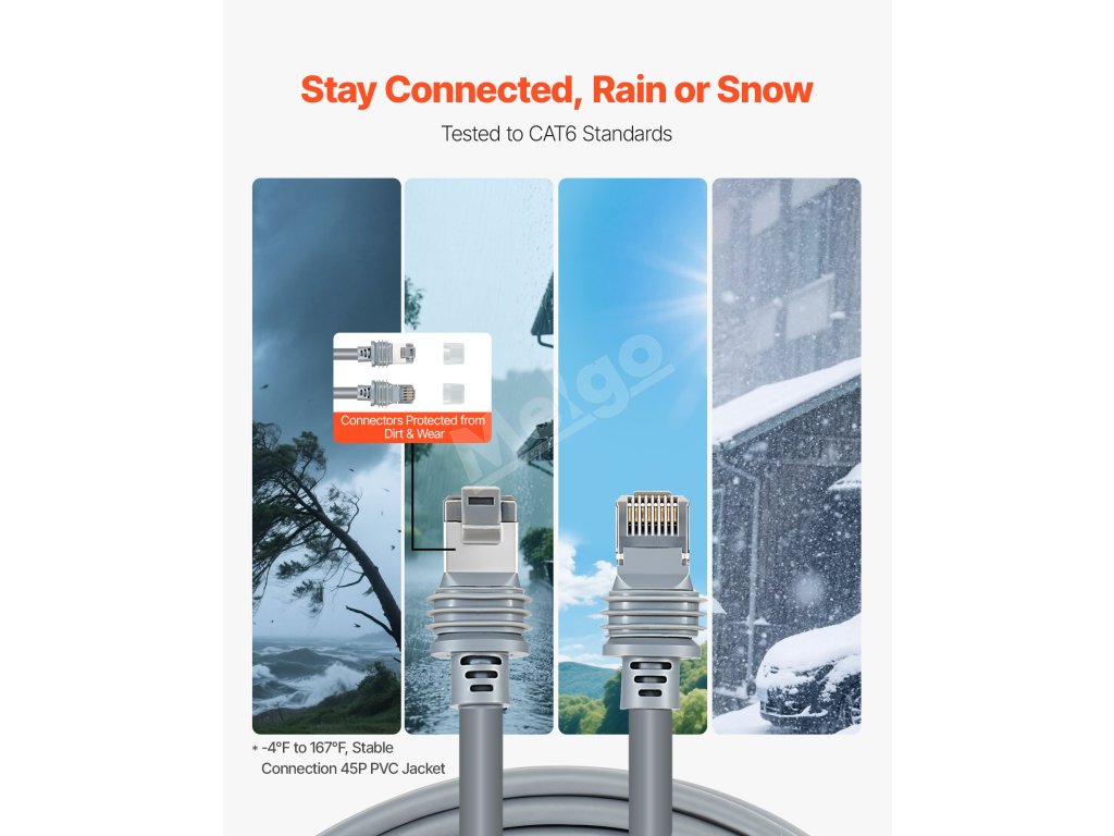 Náš kábel Starlink Gen3 má PVC plášť s vysokou hustotou a vysoko vodivé medené jadro, ktoré je skonštruované tak, aby odolalo extrémnym teplotám od -4℉ do 167℉. Odolá teplu, chladu, vetru a snehu, čím zabezpečuje bezproblémovú prevádzku siete. Vaša spoľahlivá voľba pre vonkajšie nasadenie siete Starlink.