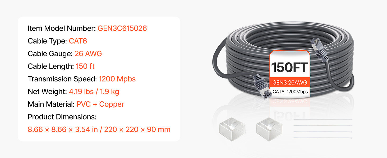 | Dĺžka kábla | 150 ft/45,72 m |