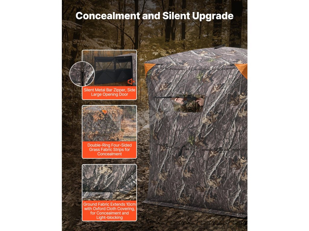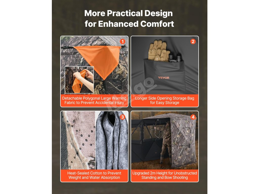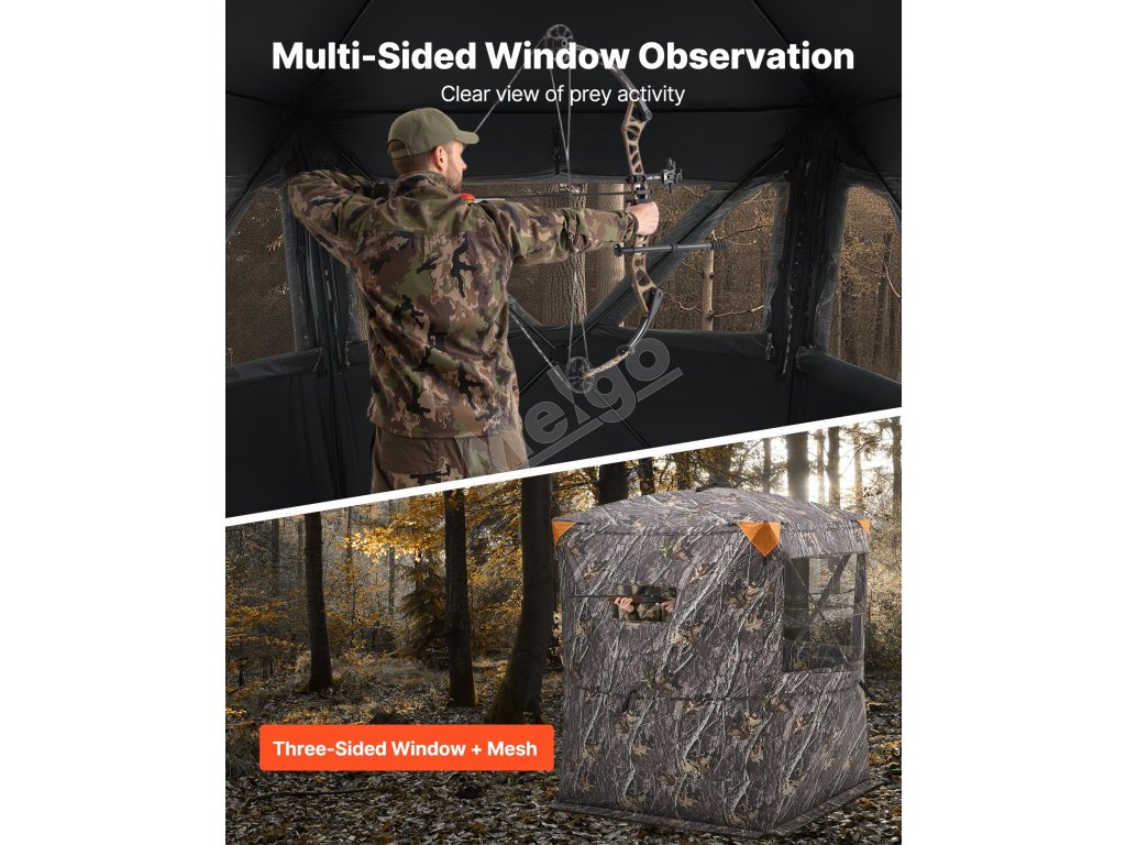 Naše poľovnícke žalúzie majú konštrukciu s viacerými oknami a viacerými uhlami pozorovania, ktoré poskytujú nerušený výhľad, čo vám umožňuje ľahko pozorovať zvieratá a presne strieľať.
