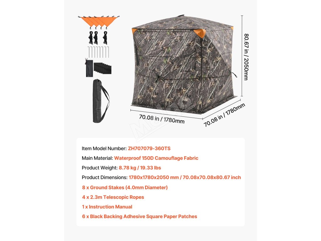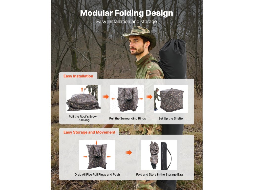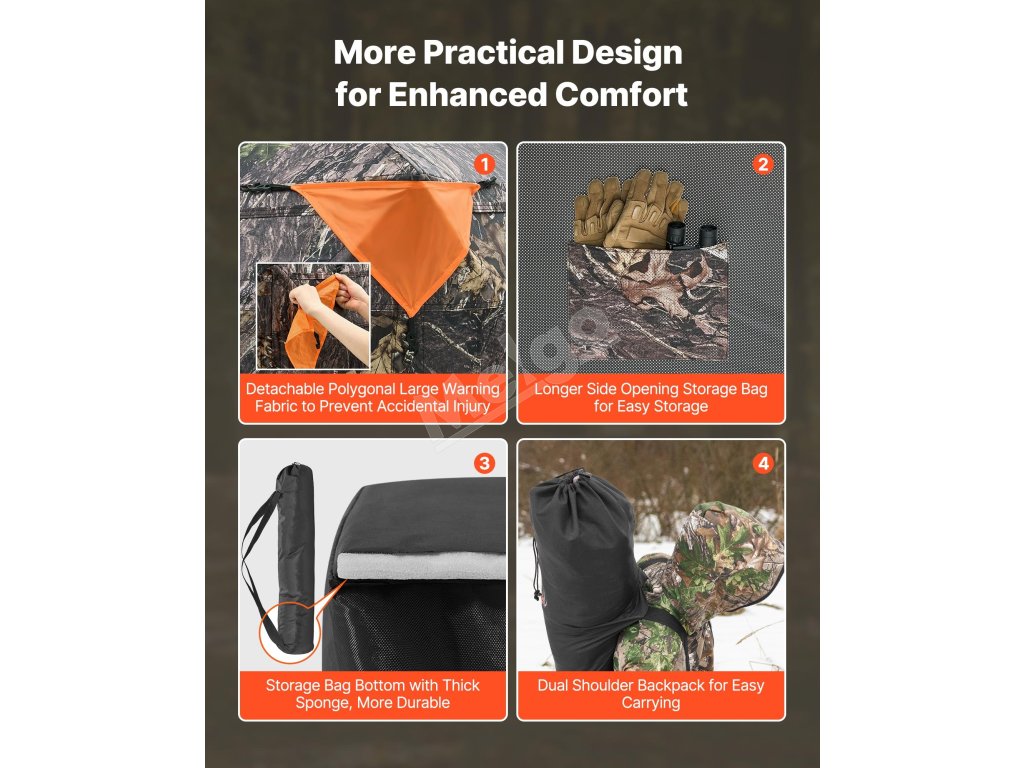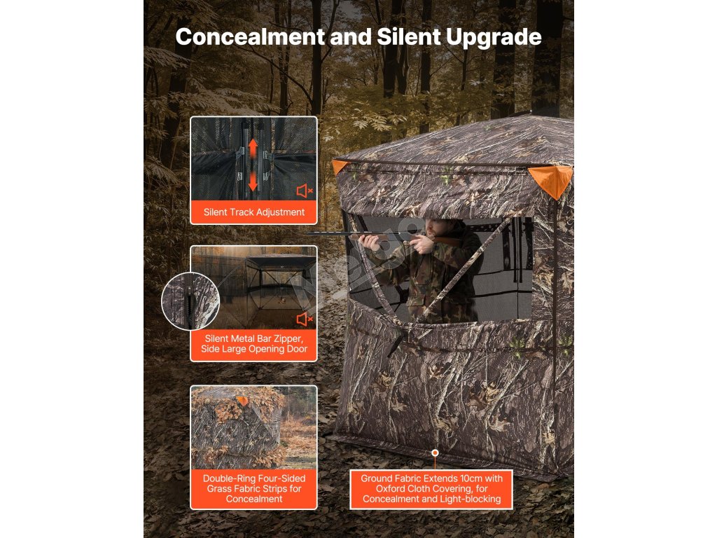 Poľovnícky úkryt 4–5 osôb, 360° kamufláž, tichý zips, s taškou