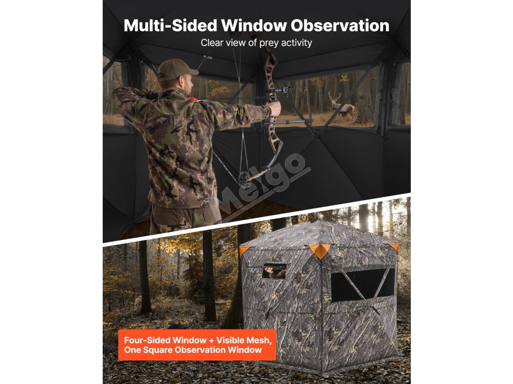 Naše poľovnícke žalúzie majú konštrukciu s viacerými oknami a viacerými uhlami pozorovania, ktoré poskytujú nerušený výhľad, čo vám umožňuje ľahko pozorovať zvieratá a presne strieľať.