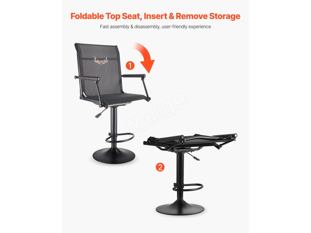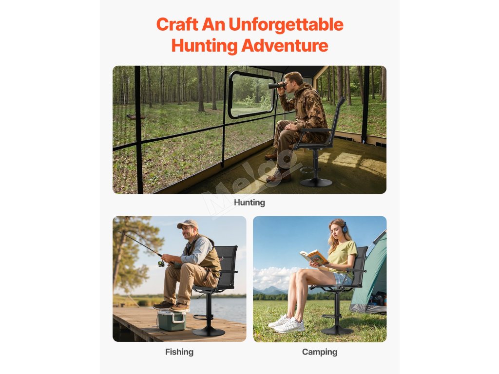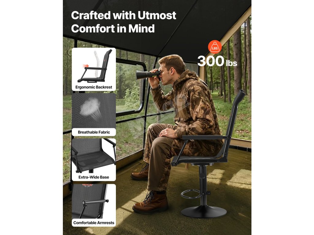 Poľovnícká stolička 360° otočná, ľahká, oceľový rám, nosnosť 136 kg