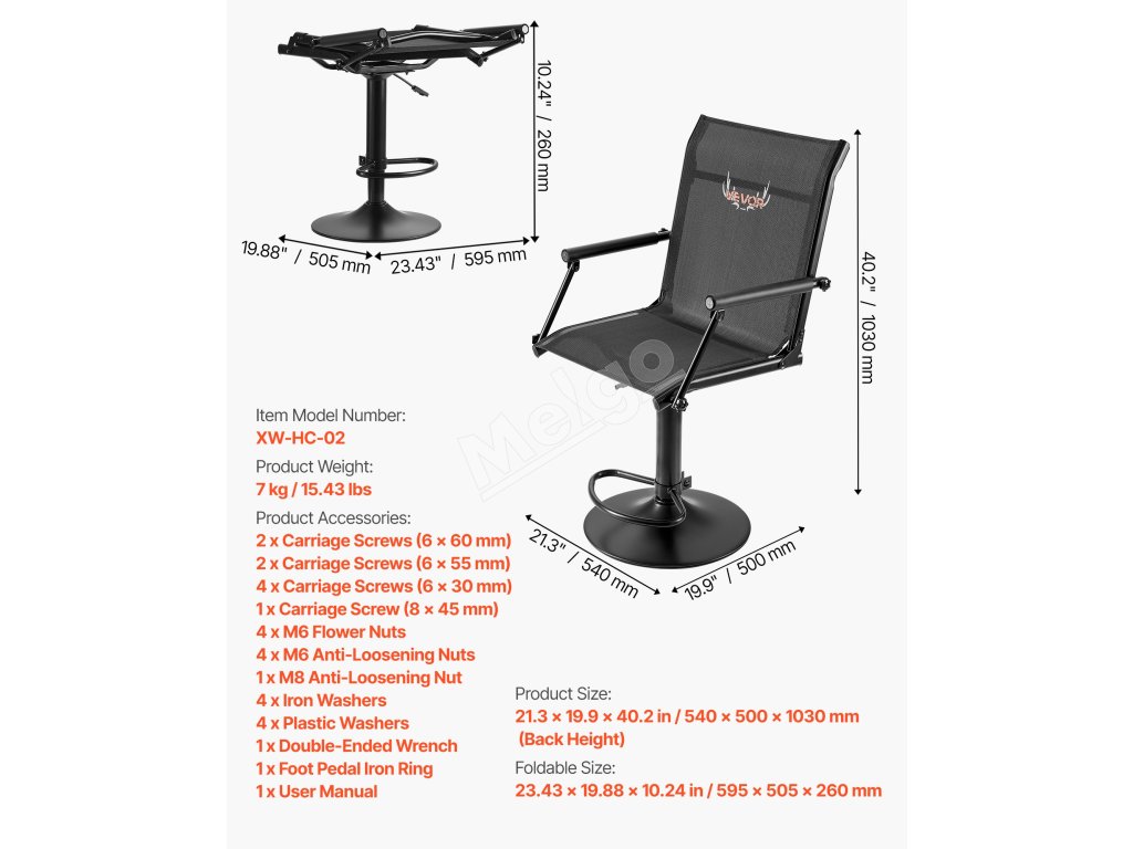 | Veľkosť výrobku | 21.3 x 19,9 x 40,2 in/540 x 500 x 1030 mm (výška operadla) |