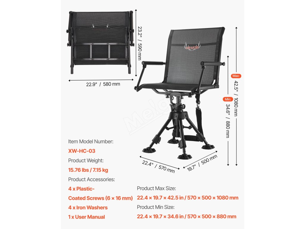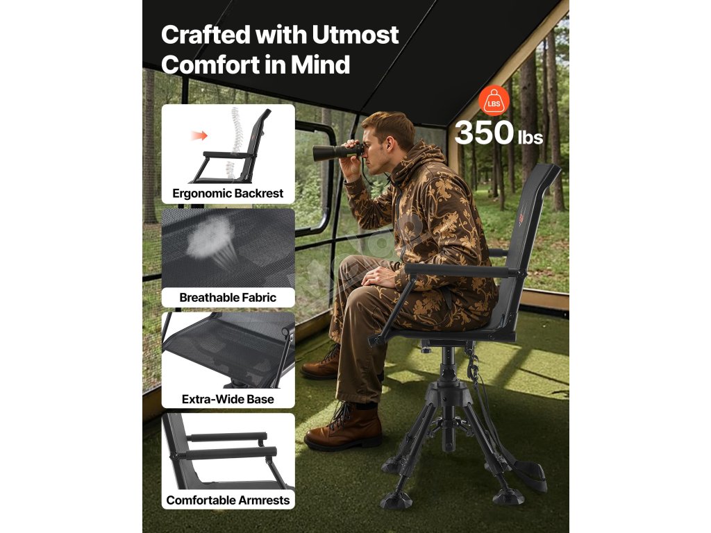 Skladacia poľovnícká stolička 360° otočná oceľový rám nosnosť 158 kg