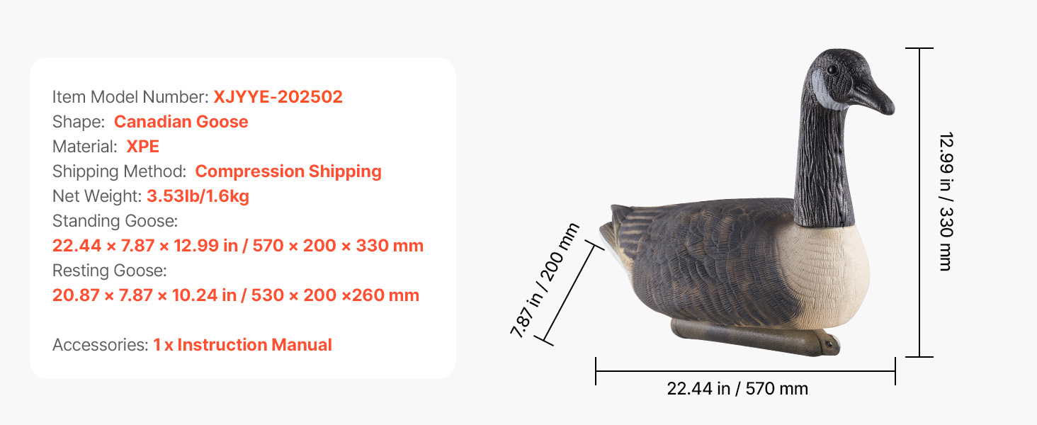 | Veľkosť stojacej husi | 22.44x7,87x12,99 in / 570x200x330 mm |