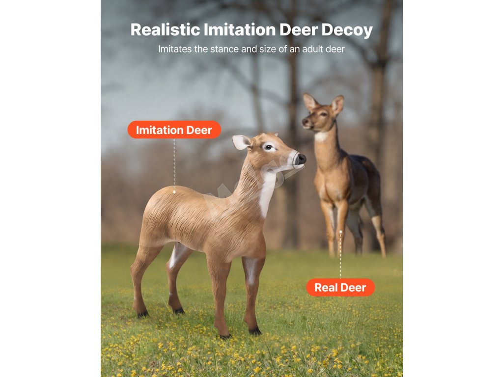 Táto realistická vábnička na jelene je mimoriadne pohodlná! Nohy sa dajú zasunúť do tela, takže je kompaktná a šetrí miesto. Ľahko sa prenáša na vaše lovecké výpravy, čím vám pomôže bez námahy odštartovať lov!