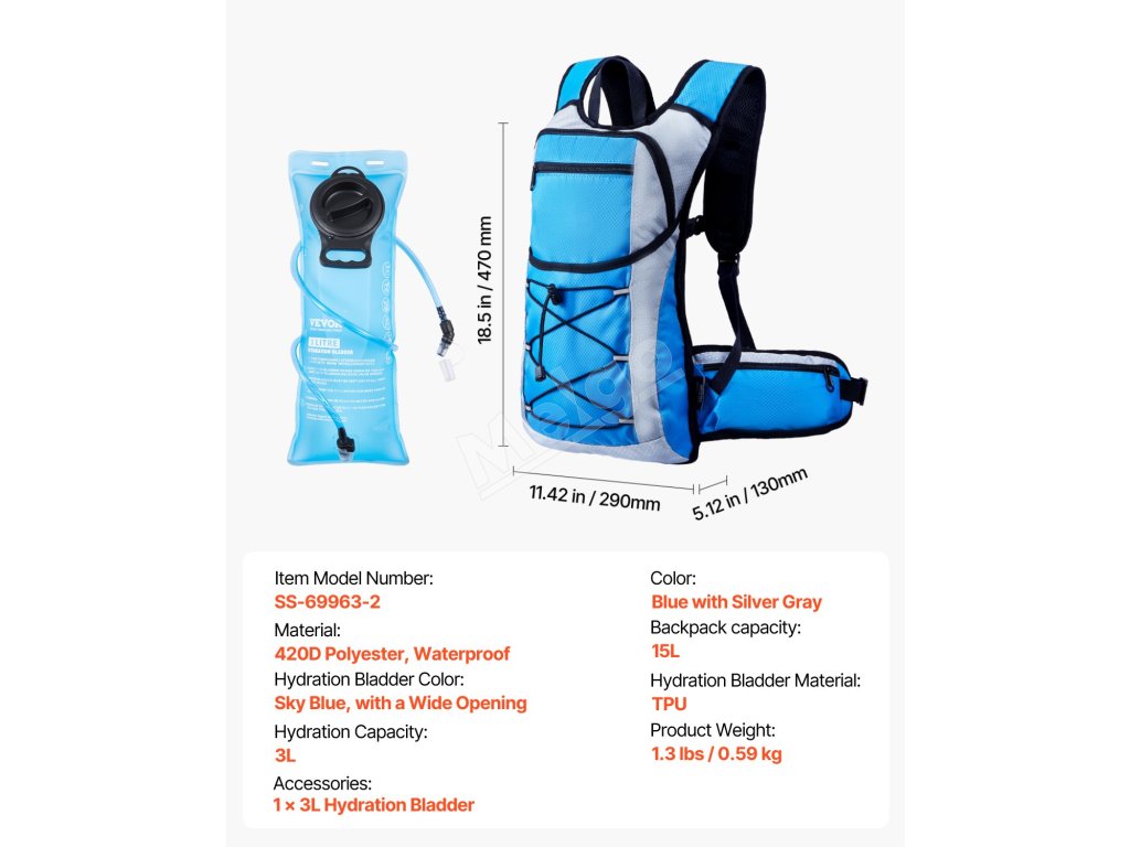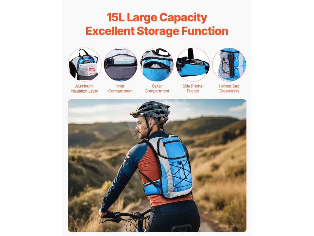 Hydratačný batoh 15L s 3L vakom z tpu, izolovaný, na turistiku