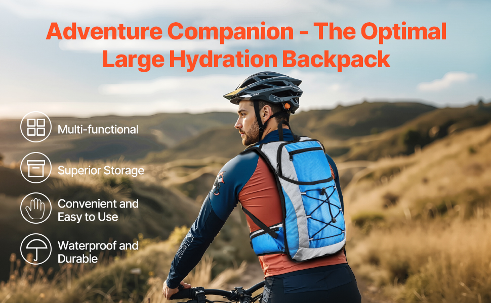 Tento hydratačný batoh kombinuje multifunkčnosť s veľkou úložnou kapacitou. Ľahko sa používa, je vodotesný a odolný. Jeho veľká úložná kapacita vám umožní objavovať prírodu bez obáv. Doplňte si hydratáciu kedykoľvek a kdekoľvek. Zostaňte plní energie počas svojich dobrodružstiev.