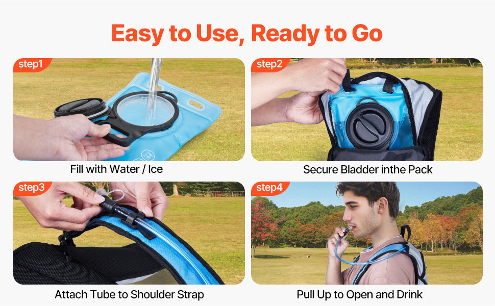Vďaka tomuto turistickému batohu s hydratačným mechúrom je udržiavanie hydratácie jednoduché. Stačia štyri jednoduché kroky: naplňte ho, upevnite vodný mechúr a hadičku a môžete piť. Začnite svoje dobrodružstvo v prírode s ľahkosťou!