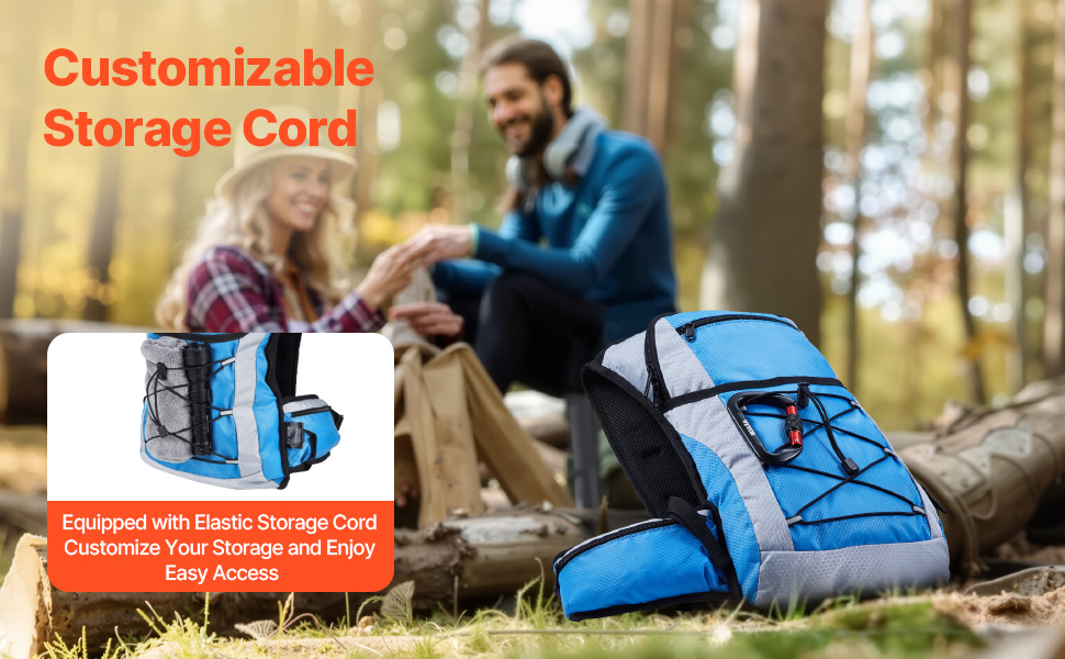Turistický batoh s vodným mechúrom je vybavený elastickou úložnou šnúrou na prispôsobiteľné skladovanie. Ľahko v ňom prenesiete trekingové palice, obuv, oblečenie, uteráky a ďalšie veci. Užívajte si pohodlný a efektívny prístup k svojmu vybaveniu pre dobrodružstvo bez námahy.