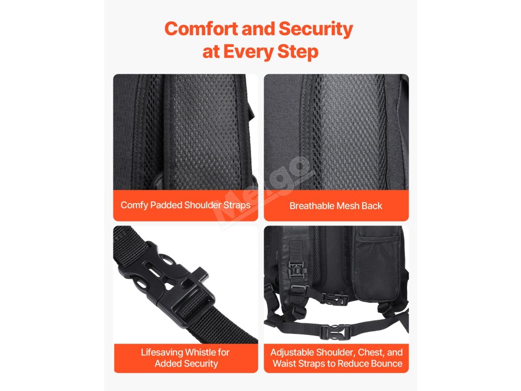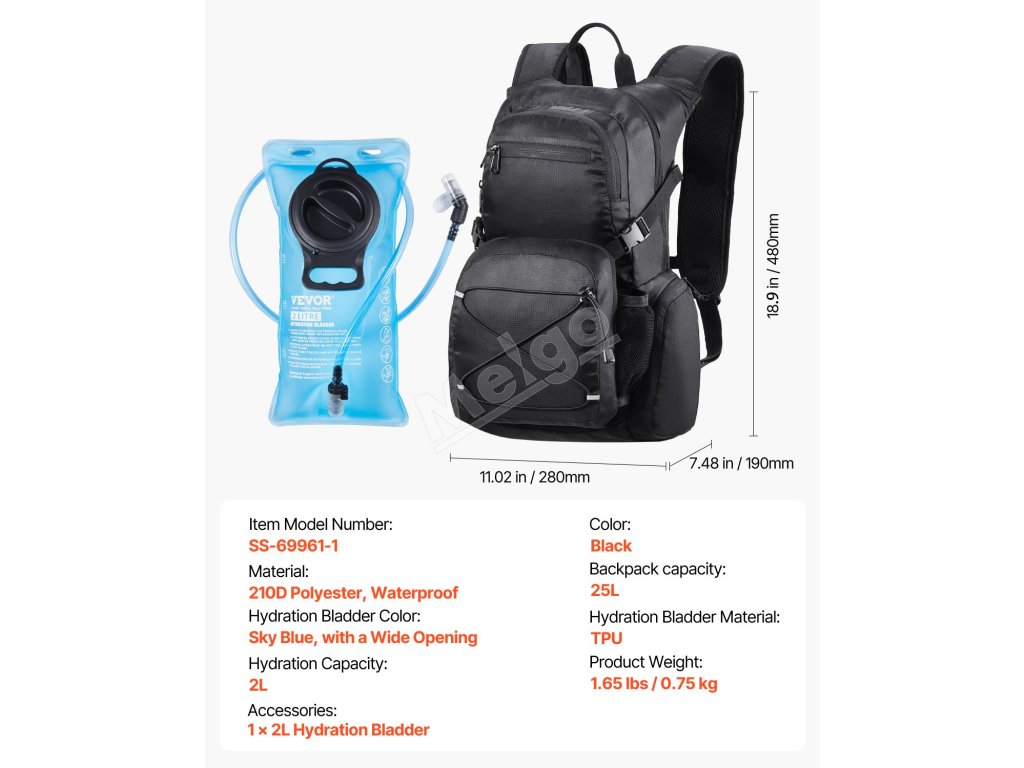 Vďaka tomuto turistickému batohu s hydratačným mechúrom je udržiavanie hydratácie jednoduché. Stačia štyri jednoduché kroky: naplňte ho, upevnite vodný mechúr a hadičku a môžete piť. Začnite svoje dobrodružstvo v prírode s ľahkosťou!