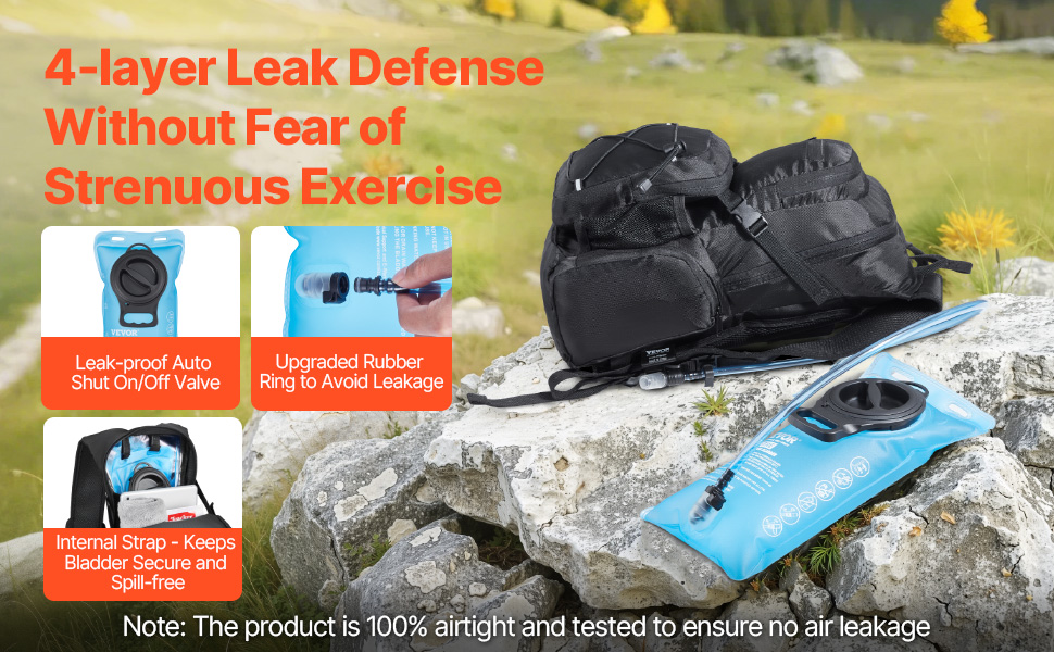 Bežecký batoh sa dodáva so štvorvrstvovou konštrukciou odolnou proti úniku vody. Obsahuje automatický uzatvárací/vypínací ventil, vylepšený gumový krúžok a zabezpečovacie popruhy. Náš hydratačný batoh prechádza 100 % testovaním vzduchotesnosti, čo zaručuje, že nedôjde k úniku ani počas intenzívnych aktivít.