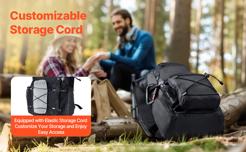 Turistický batoh s vodným mechúrom je vybavený elastickou úložnou šnúrou na prispôsobiteľné skladovanie. Ľahko v ňom prenesiete trekingové palice, obuv, oblečenie, uteráky a ďalšie veci. Užívajte si pohodlný a efektívny prístup k svojmu vybaveniu pre dobrodružstvo bez námahy.