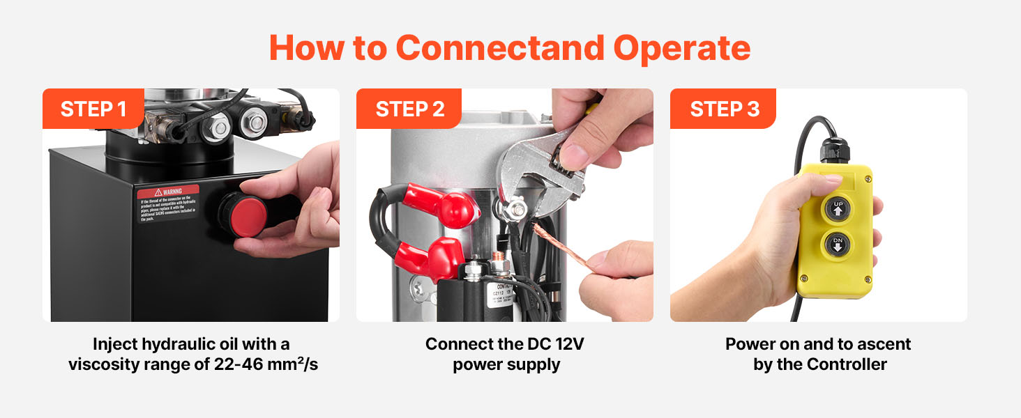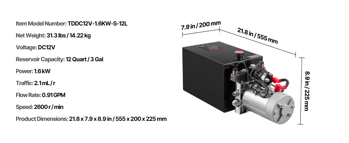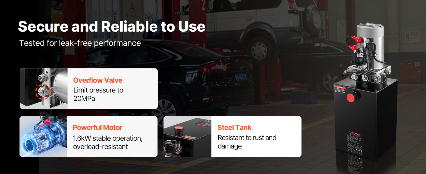 Toto hydraulické čerpadlo na sklápacie prívesy pomáha profesionálnym mechanikom a autoservisom rýchlo zvládnuť prácu. Podporuje sklápacie prívesy, zakladače, nožnicové výťahy, zdvíhacie stoly, zariadenia na manipuláciu s materiálom a mnohé ďalšie kompatibilné zdvíhacie plošiny na všestranné použitie v dielni.