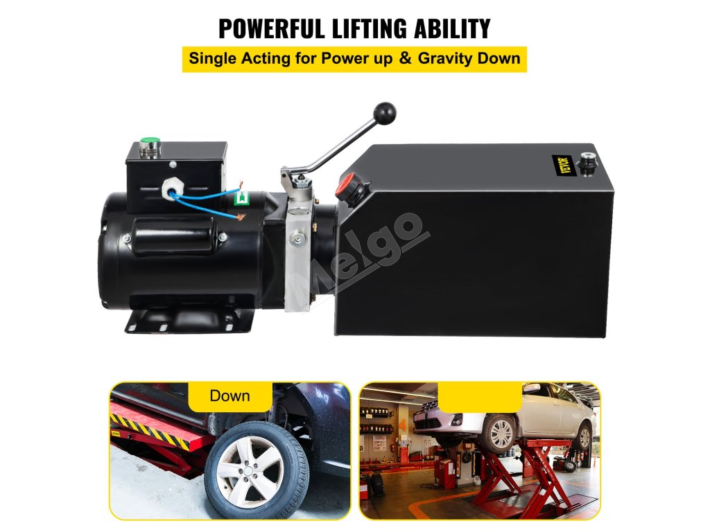 Táto pohonná jednotka na zdvíhanie automobilov bola pred dodaním vopred zmontovaná a možno ju inštalovať horizontálne alebo vertikálne. Poskytujeme návod na obsluhu, aby ste mohli hydraulické čerpadlo jednoducho nainštalovať a používať.