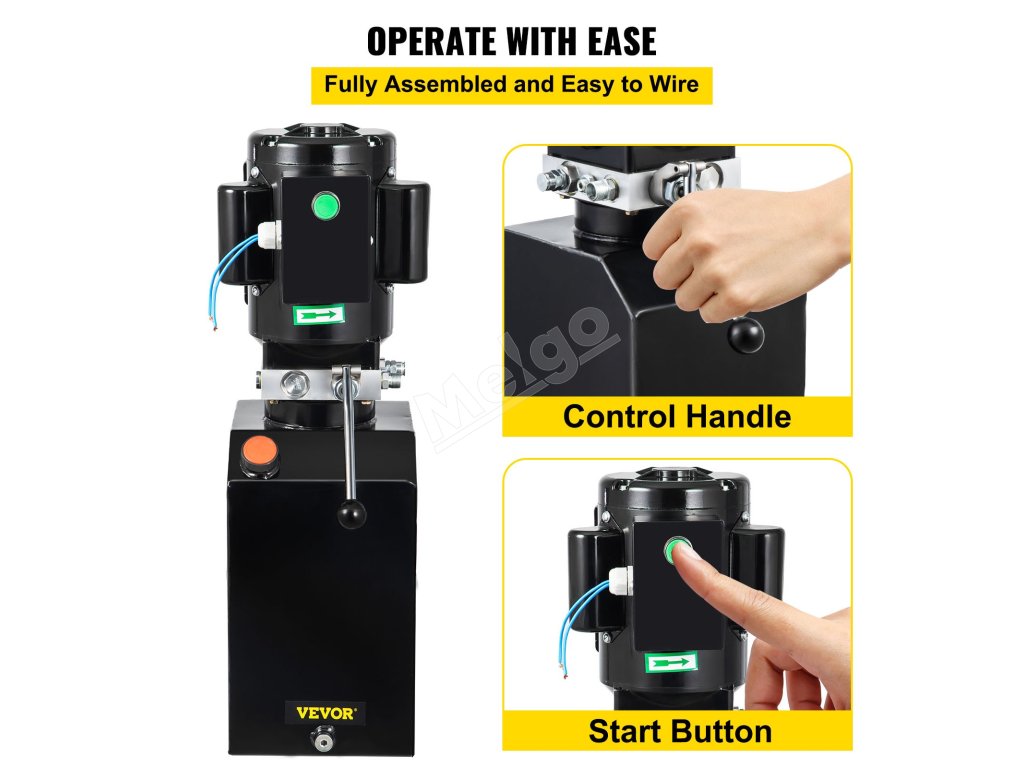 Naše hydraulické elektrické čerpadlo je kompletne zmontované. Je navrhnuté s pohodlným štartovacím tlačidlom a ovládacou rukoväťou a dodáva sa s ďalšími konektormi. Celá pohonná jednotka sa ľahko zapája a ľahko ovláda.