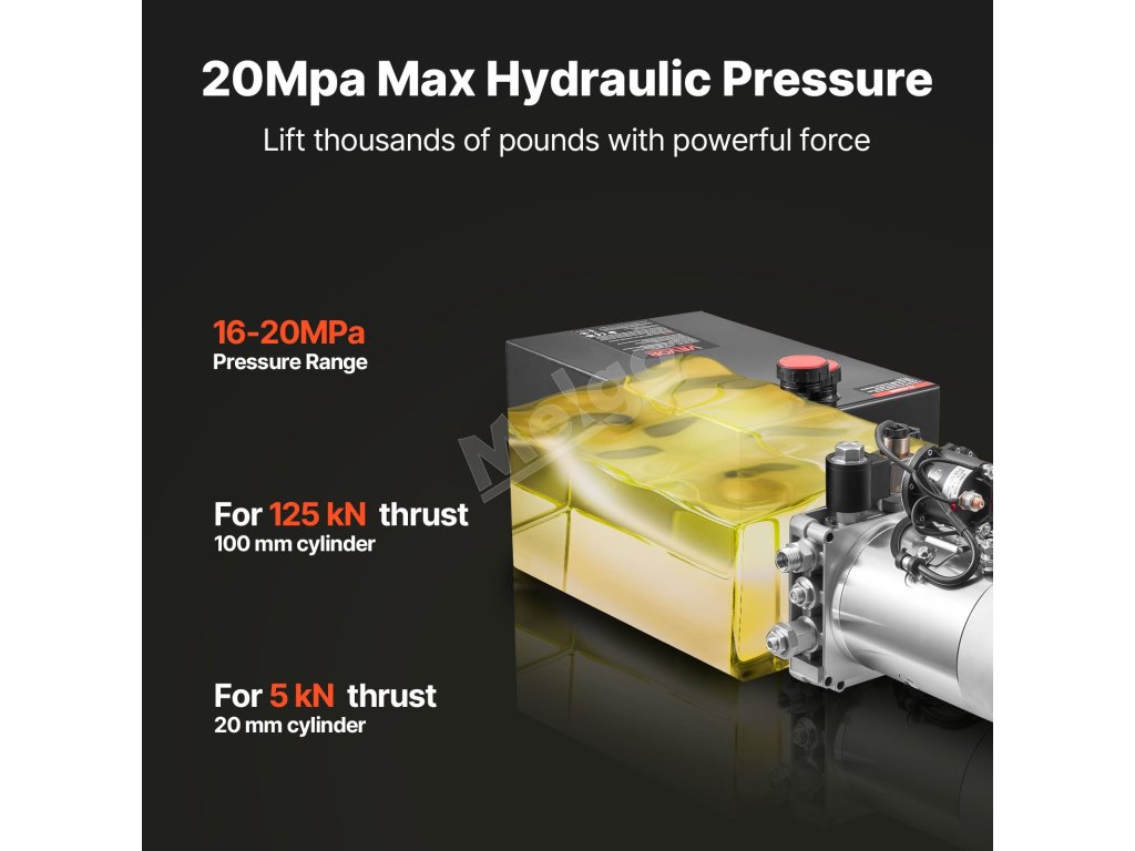 Táto hydraulická jednotka využíva motor s výkonom 1,6 kW pri 2 600 otáčkach za minútu, ktorý poskytuje pracovný tlak 16–20 MPa a až 22 MPa (3 200 psi). Válce poháňate s istotou, vysokým výkonom zdvihu a stabilným výkonom pre náročné úlohy.
