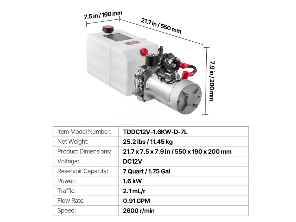 Hydraulická jednotka 7 L jednočinná 22 MPa 3.4 L/min DC 12V