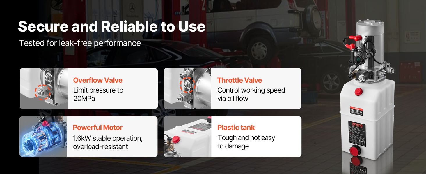 Toto hydraulické čerpadlo na sklápacie prívesy pomáha profesionálnym mechanikom a autoservisom rýchlo zvládnuť prácu. Podporuje sklápacie prívesy, zakladače, nožnicové výťahy, zdvíhacie stoly, zariadenia na manipuláciu s materiálom a mnohé ďalšie kompatibilné zdvíhacie plošiny na všestranné použitie v dielni.