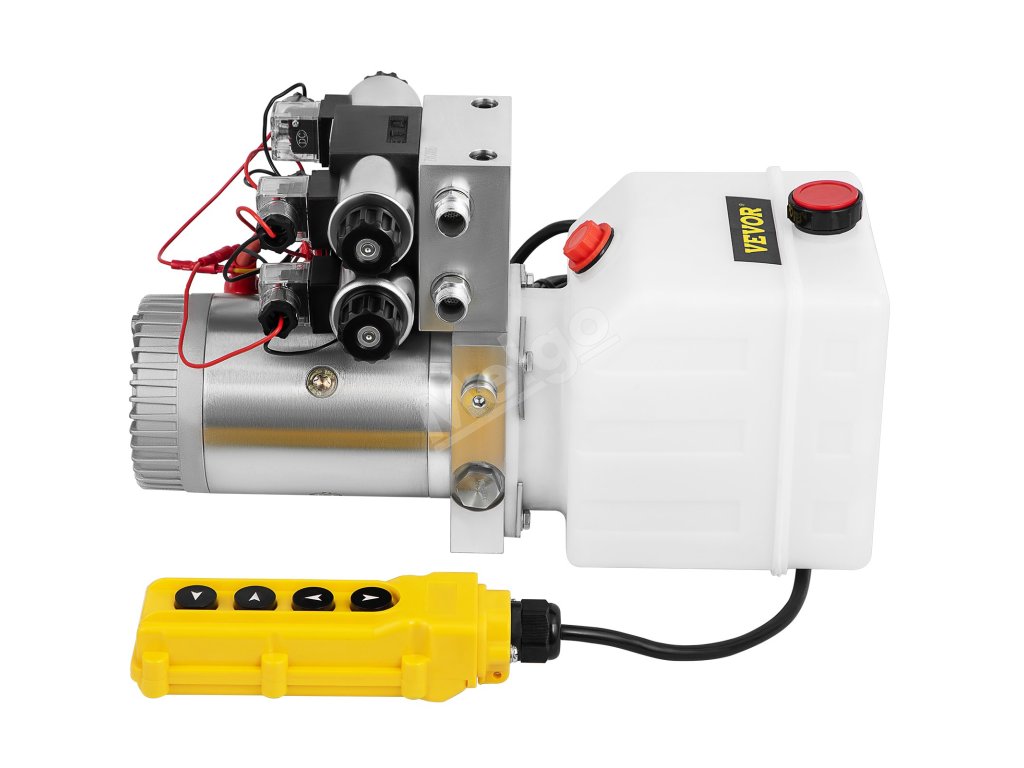 - 1 x 12V DC 4,5 l dvojčinný hydraulický solenoidový agregát ( 4-tlačidlový prívesok s odpojiteľným predradeným káblom ako štandard)