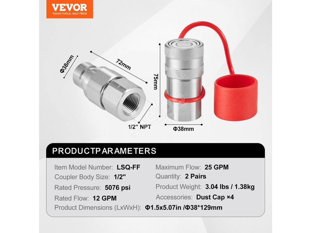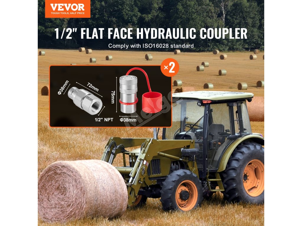 VEVOR 1/2" ploché hydraulické spojky - nástroj na spájanie hydraulických potrubí!