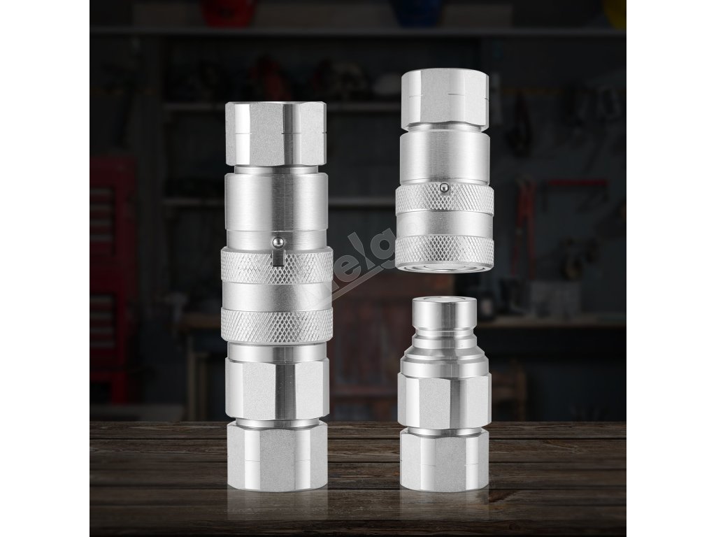 Ploché čelné hydraulické spojky sú vybavené 1/2" NPT závitom s novo vylepšenou konštrukciou ventilu, ktorý poskytuje vysoký prietok 25 GPM a menovitý tlak 5076 PSI, čo výrazne zvyšuje životnosť.