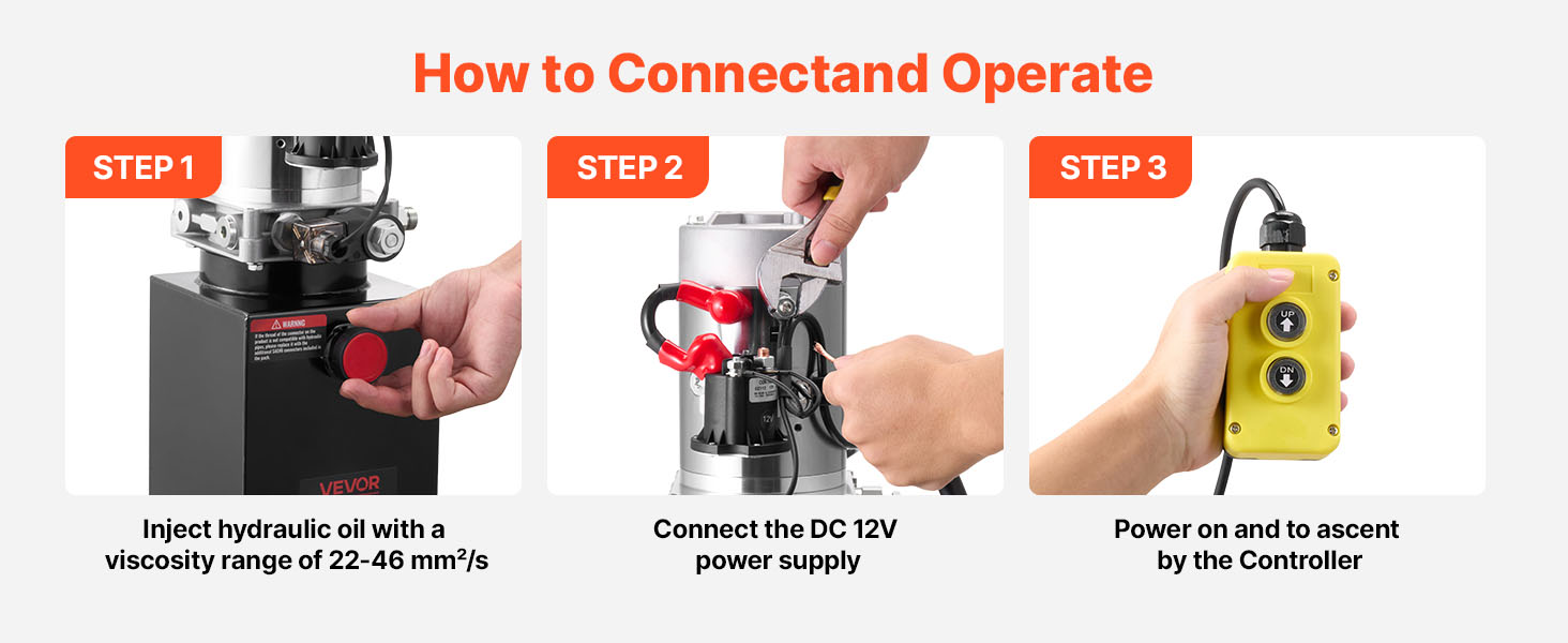 Toto hydraulické čerpadlo pre sklápače pomáha profesionálnym mechanikom a autoservisom rýchlo zvládnuť prácu. Podporuje sklápače, vysokozdvižné vozíky, nožnicové zdviháky, zdvihacie stoly, zariadenia na manipuláciu s materiálom a mnoho ďalších kompatibilných zdvíhacích plošín pre všestranné použitie v dielni.