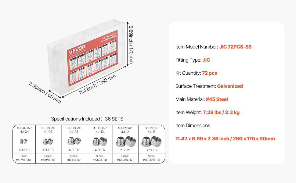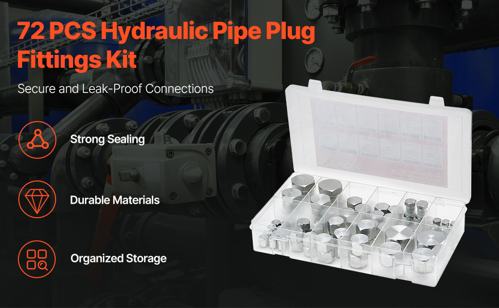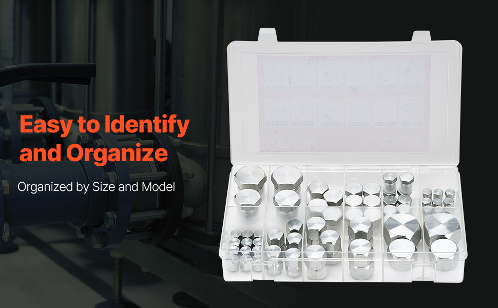 Táto súprava ponúka široký rozsah rozmerov, vysoko presné závity a netesniace tesnenia. Sú vyrobené z odolnej pozinkovanej ocele č. 45 a sú odolné voči korózii. Vďaka rozdelenému úložnému priestoru a označenej stupnici sú prenosné a ideálne pre priemyselné, poľnohospodárske a strojárske stroje.
