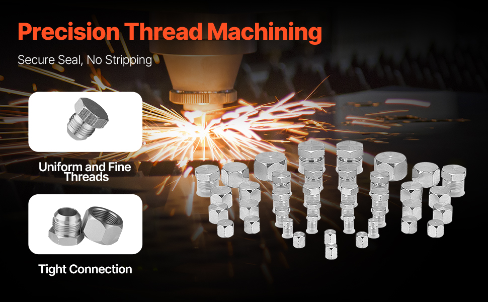 Tieto uzávery a zátky hydraulických hadíc sa vyrábajú s presnými závitmi s jemnou toleranciou, ktoré zabezpečujú rovnomerné, hladké závity a bezpečné spoje, ktoré zabraňujú preklzu. Tým sa účinne predchádza netesnostiam a zabezpečujú sa bezpečné hydraulické spojenia bez únikov.