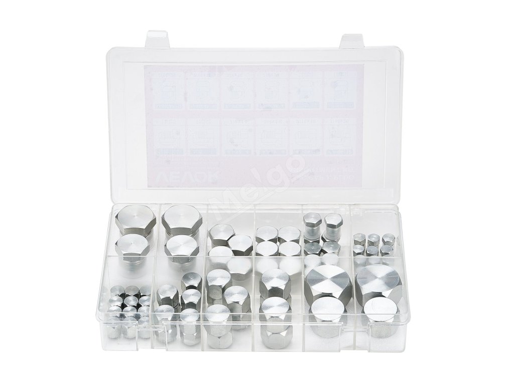 Táto súprava ponúka široký rozsah rozmerov, vysoko presné závity a netesniace tesnenia. Sú vyrobené z odolnej pozinkovanej ocele č. 45 a sú odolné voči korózii. Vďaka rozdelenému úložnému priestoru a označenej stupnici sú prenosné a ideálne pre priemyselné, poľnohospodárske a strojárske stroje.