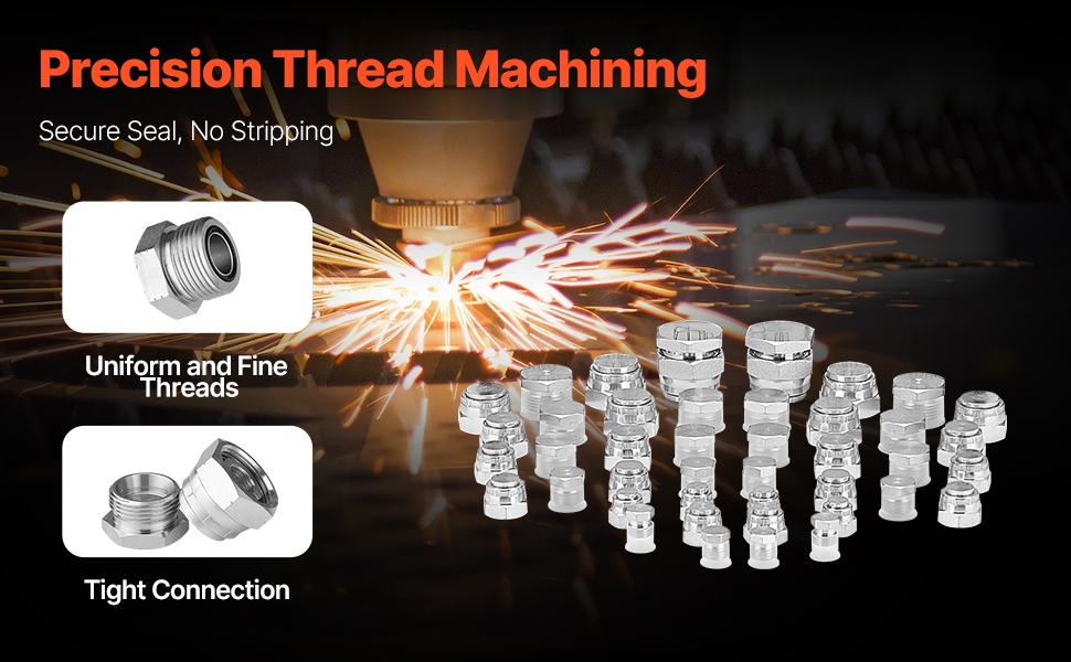 Tieto uzávery a zátky hydraulických hadíc sa vyrábajú s presnými závitmi s jemnou toleranciou, ktoré zabezpečujú rovnomerné, hladké závity a bezpečné spoje, ktoré zabraňujú preklzu. Tým sa účinne predchádza netesnostiam a zabezpečujú sa bezpečné hydraulické spojenia bez únikov.