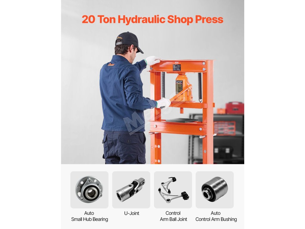 Náš automobilový lis je vyrobený z vysokokvalitnej vysokopevnostnej ocele, čo výrazne zvyšuje stabilitu základne. To zaručuje bezpečnejšiu a spoľahlivejšiu prevádzku pri demontáži a montáži komponentov, ako sú puzdrá, ložiská, guľové kĺby, U-kusy a iné diely.
