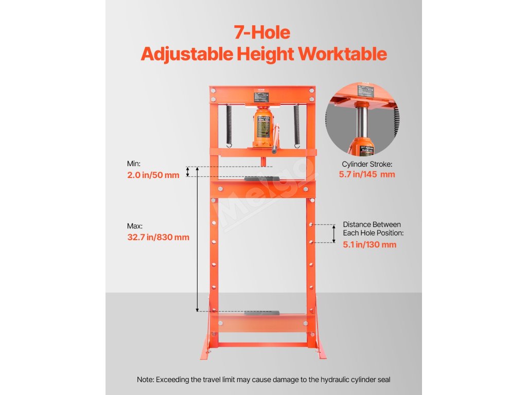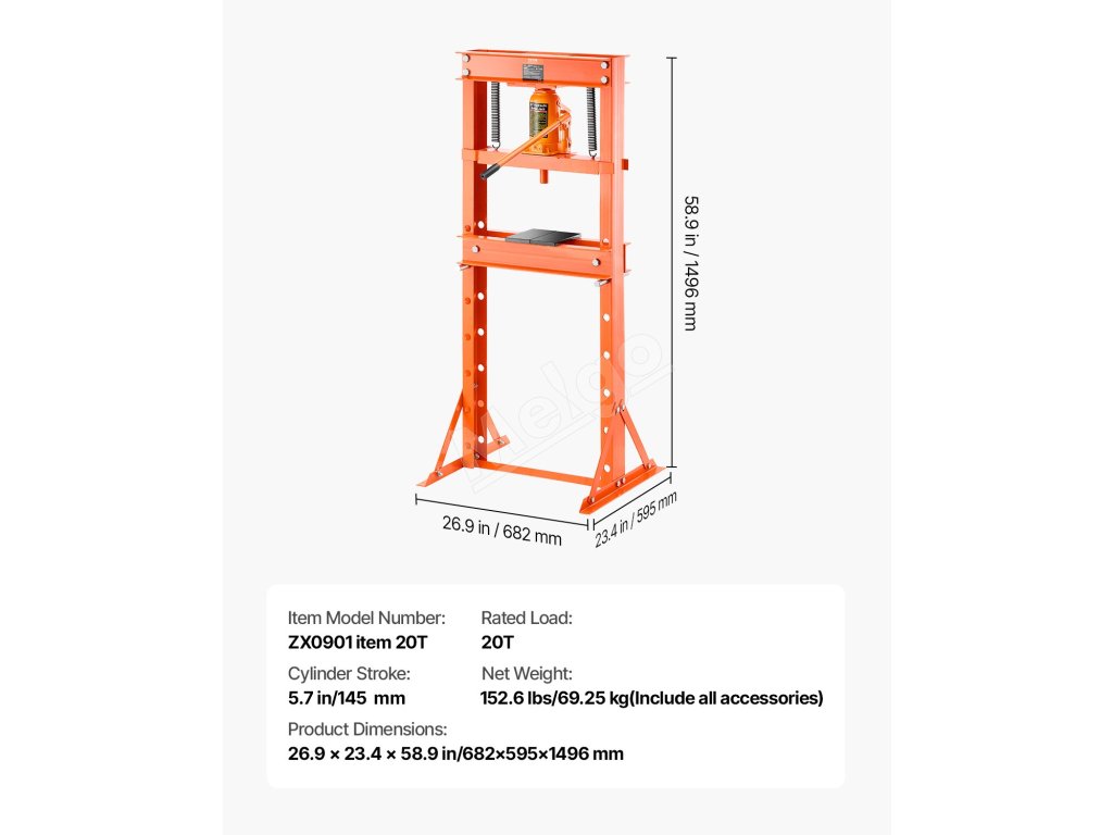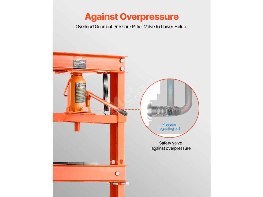 Hydraulický lis 20 T h-rám nastaviteľný s platňou a ventilom