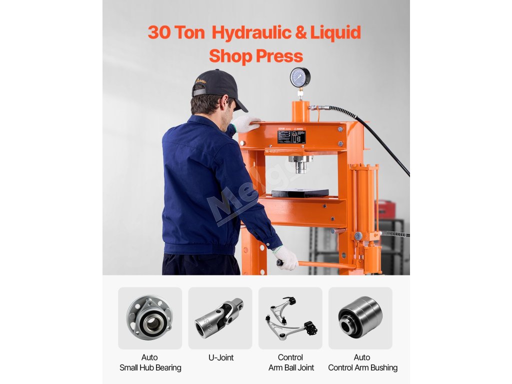 Náš automobilový lis je vyrobený z vysokokvalitnej vysokopevnostnej ocele, čo výrazne zvyšuje stabilitu základne. To zaručuje bezpečnejšiu a spoľahlivejšiu prevádzku pri demontáži a montáži komponentov, ako sú puzdrá, ložiská, guľové kĺby, U-kusy a iné diely.