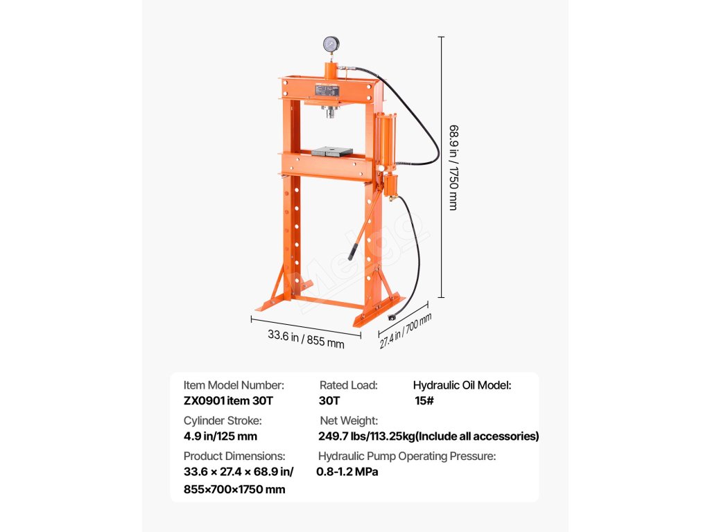 Hydraulický lis 30 T h-rám pneumatický s lisovacou platňou a podporou